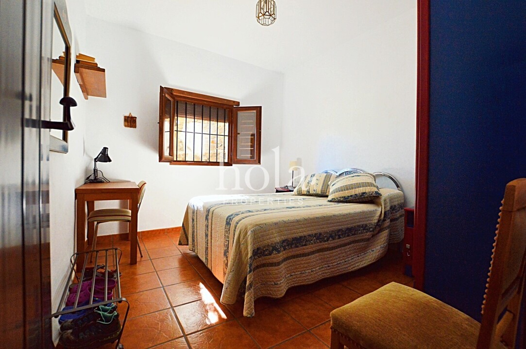 The house itself has been thoughtfully renovated to create a comfortable living space. With three spacious bedrooms, it is ideal for accommodating family and friends. The heart of the home centers around the wood burner, providing warmth to the living area. The practical kitchen is well-equipped with modern appliances, benefiting from an efficient lithium solar system. This combination of traditional Spanish design and contemporary amenities creates a great home.